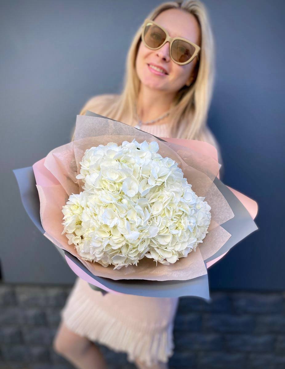 Для заказа товара "Букет из трёх белых гортензий" с доставкой в Владимире нажмите в корзину