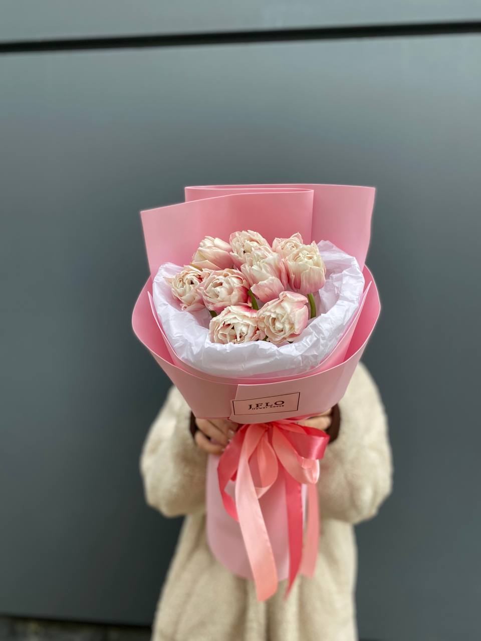 Девять тюльпанов в розовой гамме собраны в лаконичную композицию с мягким обрамлением. Бутоны держат форму и создают спокойный цветовой акцент в любом пространстве. Монобукет для тех, кто ценит простоту без лишних деталей.