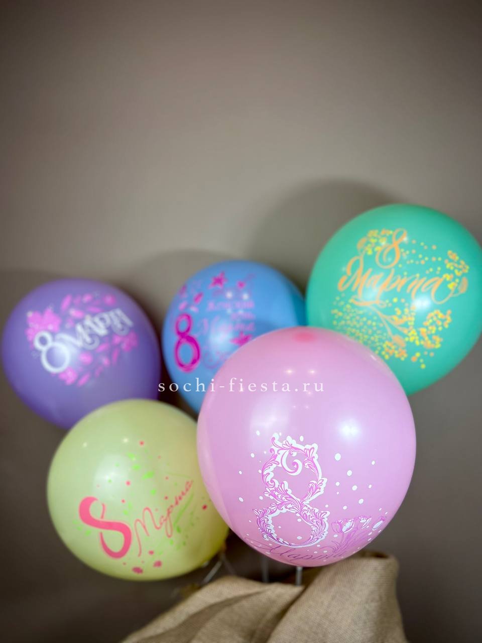 Яркий акцент к весеннему букету в пяти цветовых решениях. Латексный шар с поздравительной надписью добавит композиции объема и праздничного настроения. Наполнен гелием.