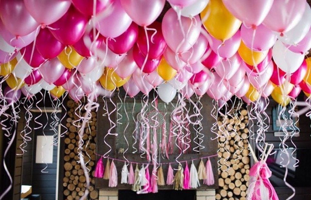 облако из 7 шт. хромированных золотых шаров, 7 шт. шаров белого цвета, 6 шт. шаров нежно-розового или кремового цвета, а также грузика. Все шары мы предварительно обрабатываем специальным составом Highfloat, обеспечивая им длительный срок полета.