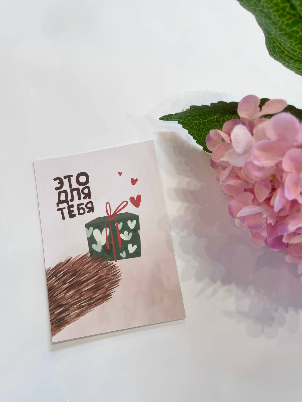 Минималистичная карточка с принтом на английском языке. Внутри поместится ваше сообщение до семи фраз. Дополняет букет и сохраняет теплоту слов после увядания лепестков.