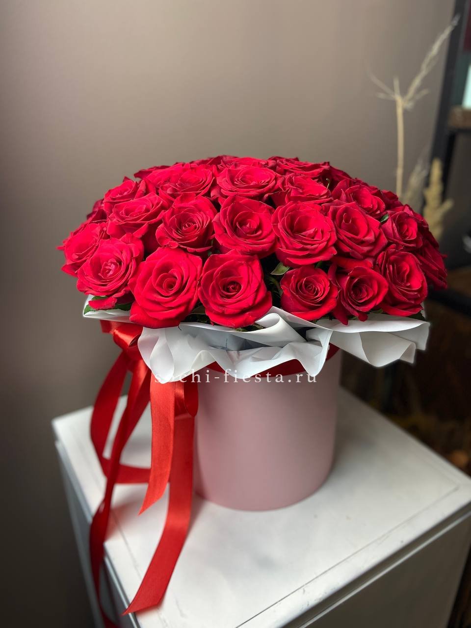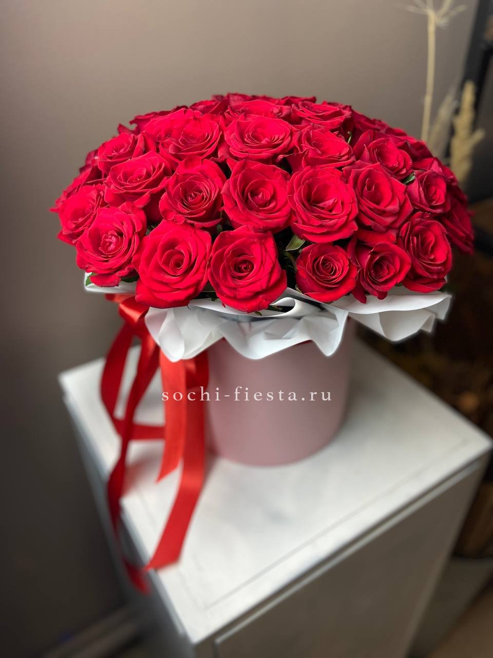французские красные розы в боксе.