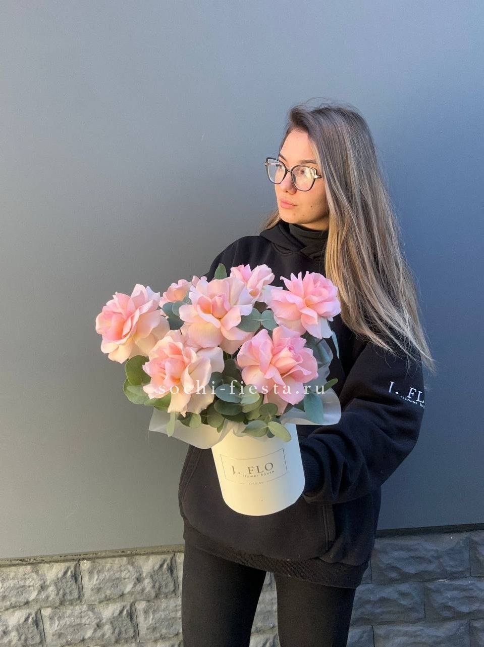 вывернутые розы- 7 шт., цилиндр D13, эвкалипт, лента, упаковка. Данная цена доступна при заказе от 10 шт.