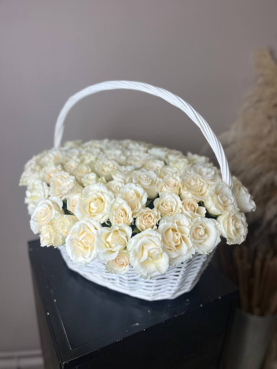 хризантема, кустовая роза, гортензия, белая роза, антиринум, статица, корзина средняя.
