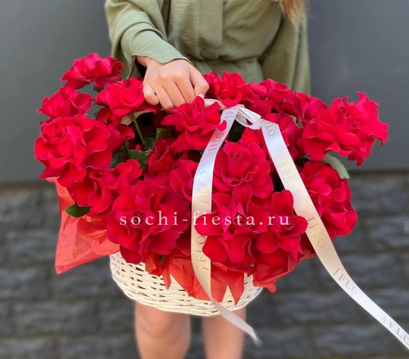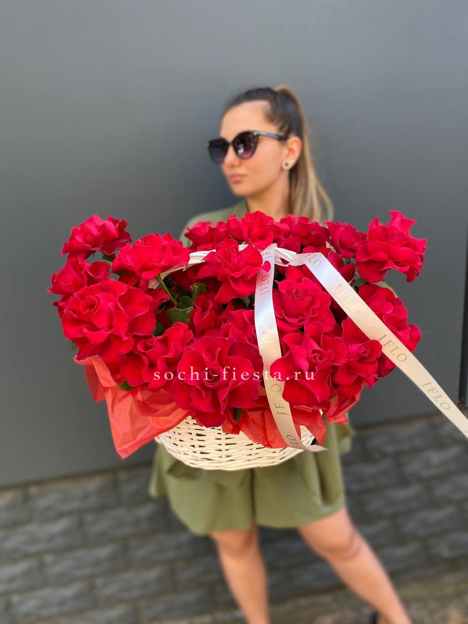 Для заказа товара "Красные французские розы в корзине" с доставкой в Владимире нажмите в корзину