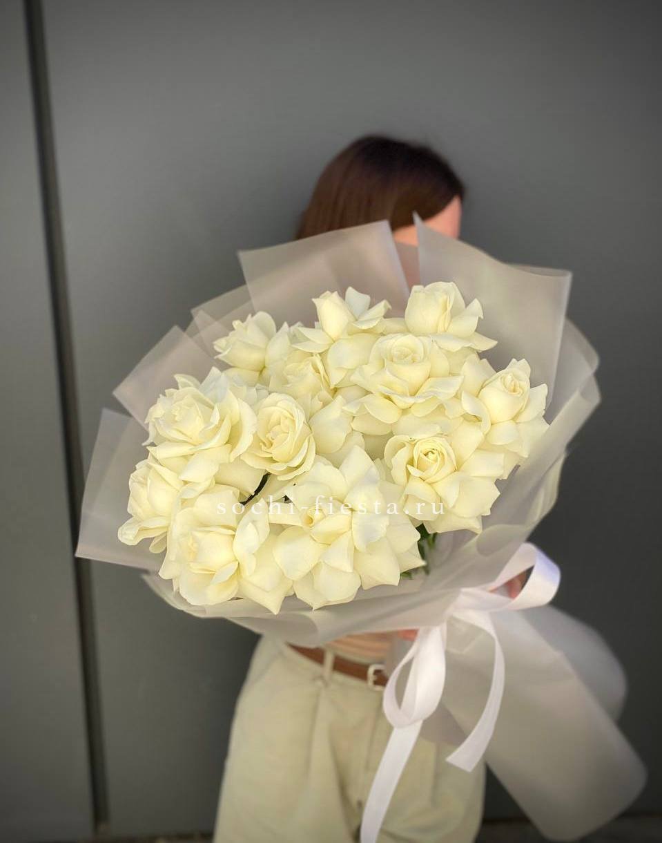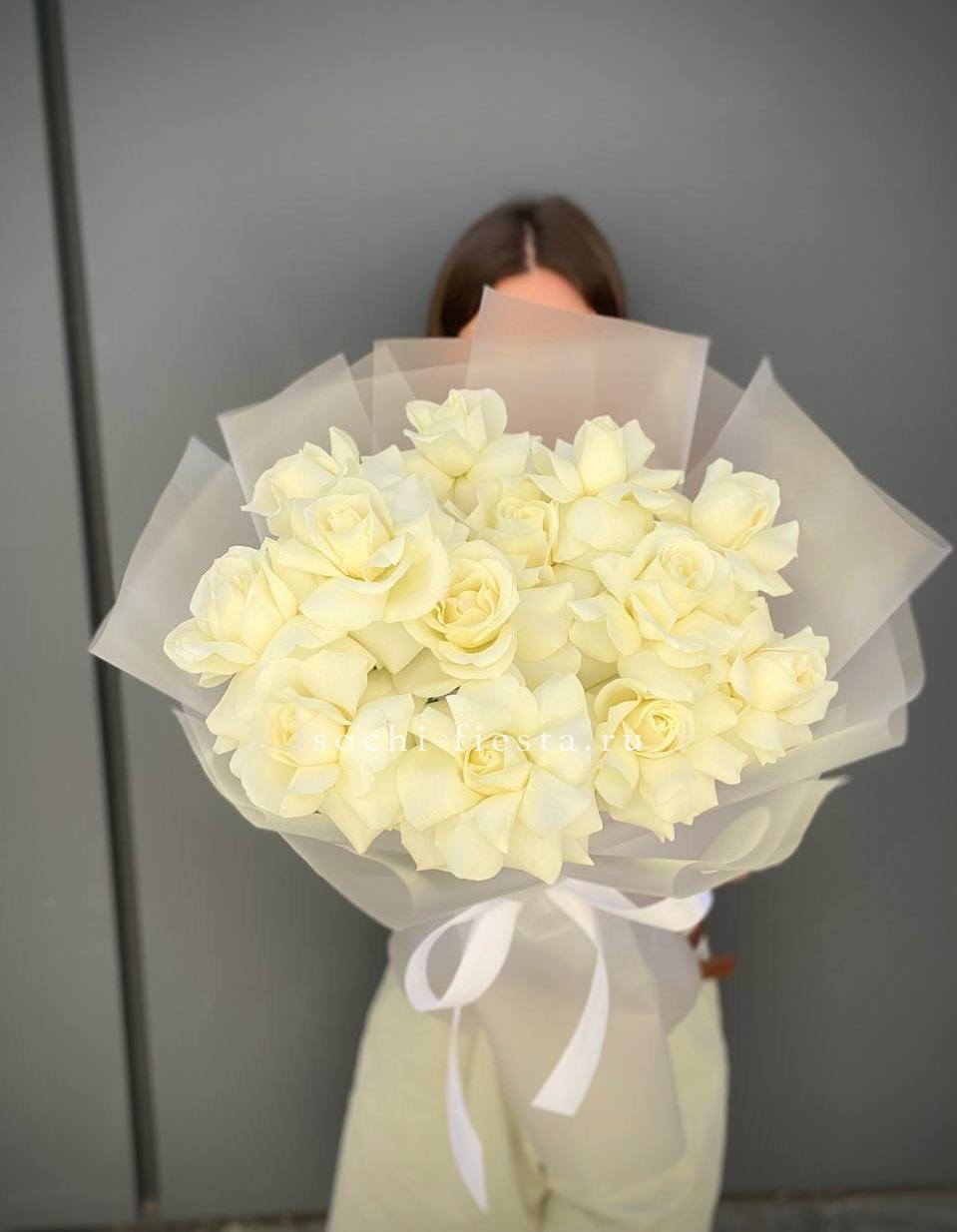 белая роза 303шт., оформление в букет или корзину на выбор.