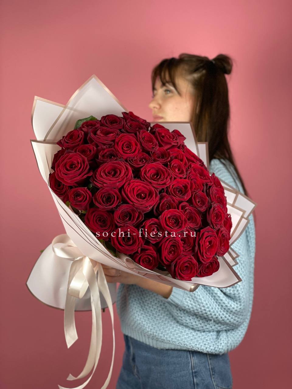 29 красных роз 70 см., лента, крафт или дизайнерская пленка.