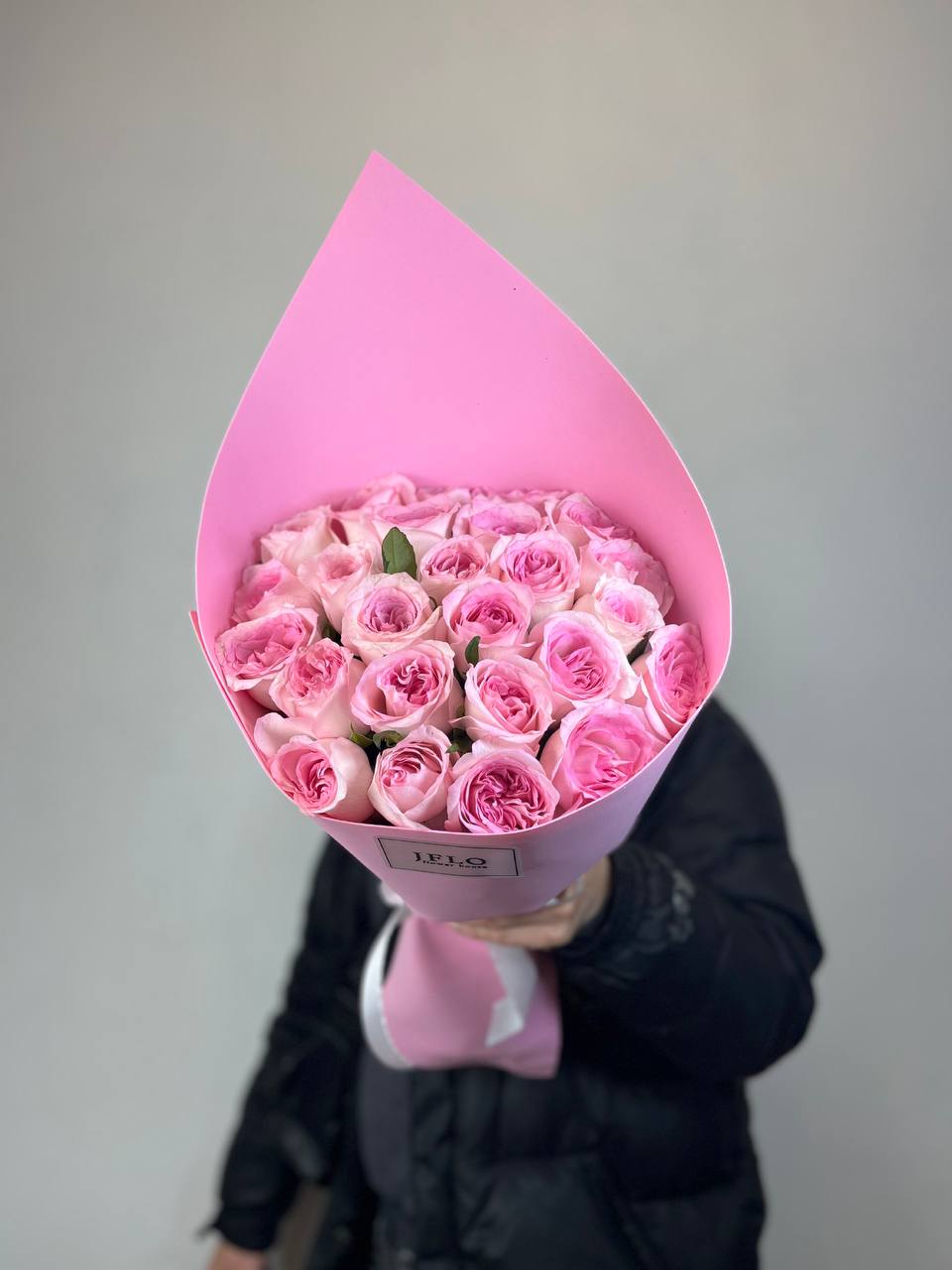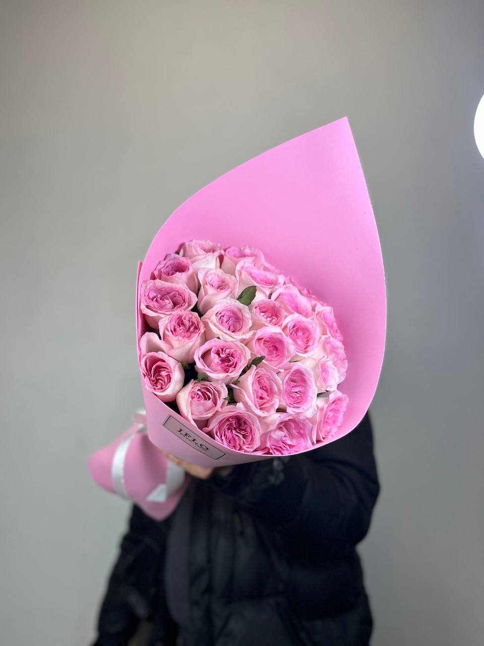 Классический розовый букет с мягкими переходами оттенков и свежей зеленью эвкалипта. Простая композиция подходит для спокойных встреч и тёплых моментов. Количество бутонов выбирается по желанию.