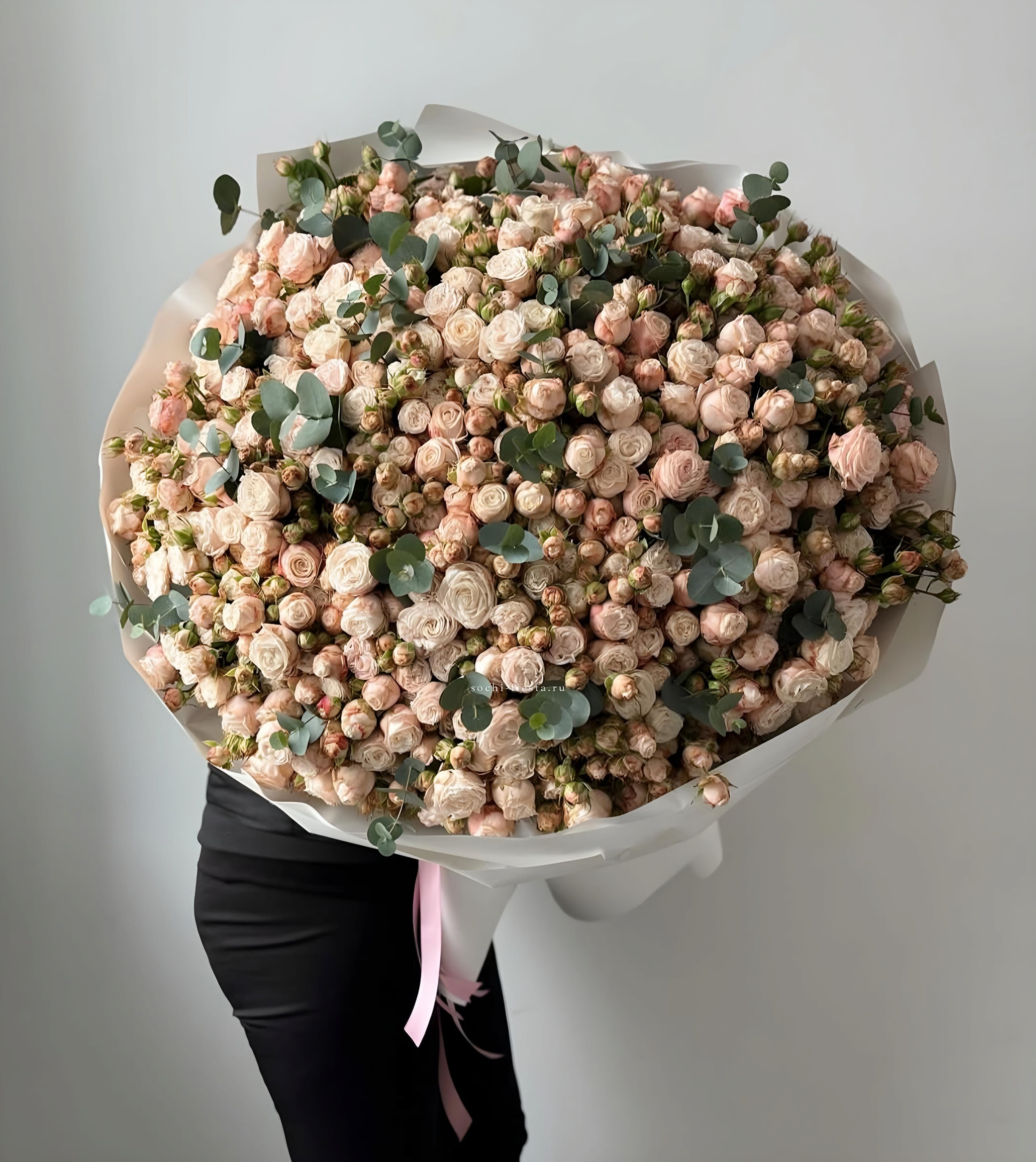минимальный состав: кустовые розы 31шт., лента, упаковка на выбор.
