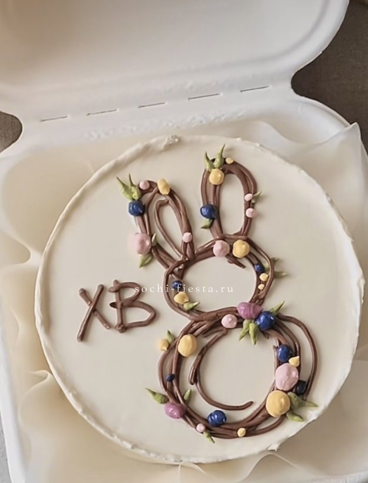 Авторский дизайн с весенней символикой на светлом фоне задает радостное настроение. Торт создан вручную с вниманием к каждой детали. На выбор две начинки: клубничный пломбир или шоколадный трюфель.